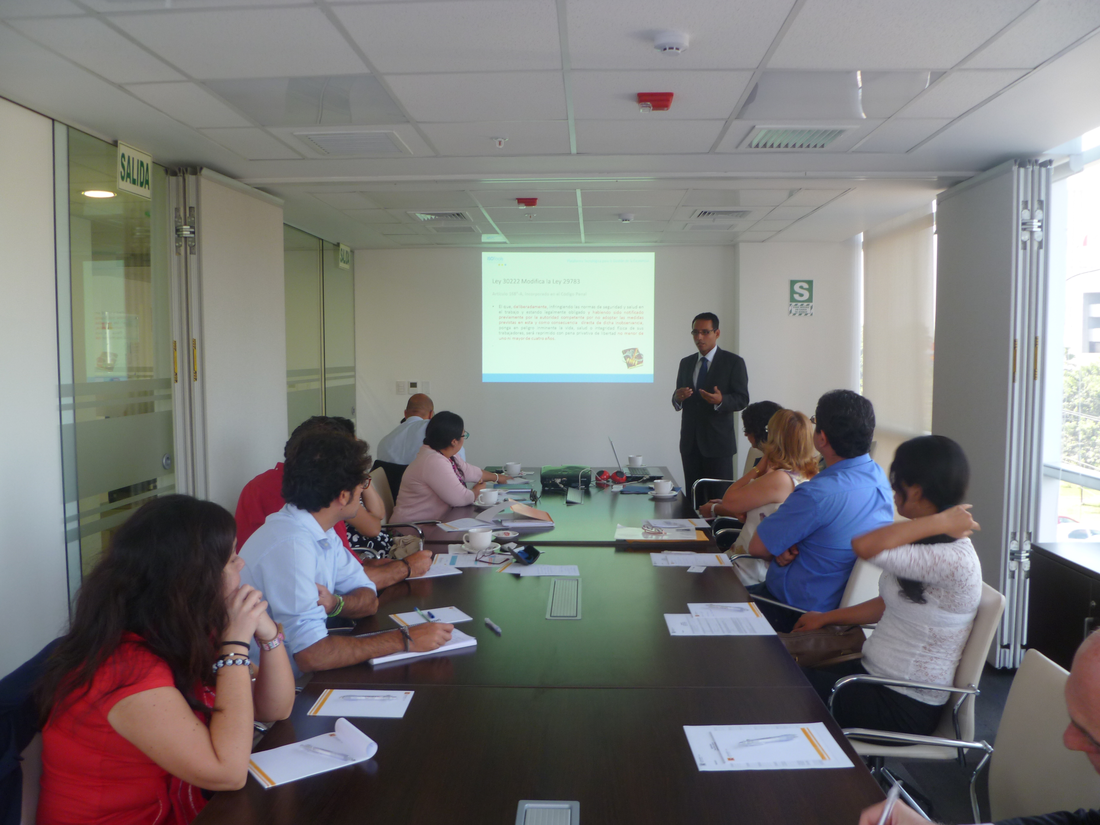 El encuentro tenía como objetivo presentar los principales requisitos exigidos por la Ley 29783 de Seguridad y Salud en el Trabajo (SST) y la forma de cumplimiento, así como las disposiciones complementarias como son el Reglamento de la Ley y sus modificaciones.