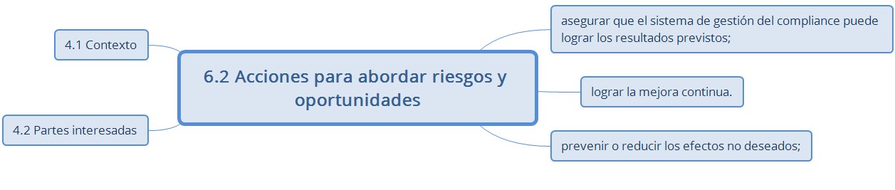 Este requisito es vital para el éxito del CMS porque nos permite hacer conexión entre las necesidades y expectativas de las partes interesadas pertinentes con los riesgos y oportunidades, que es el requisito 6.1 como indica el siguiente esquema: