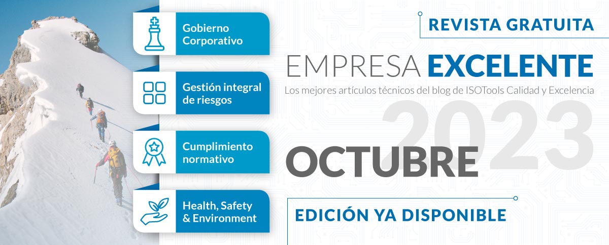 En este mes de noviembre os presentamos una nueva edición de la Revista Empresa Excelente. En esta publicación encontrarás una recopilación de los mejores artículos técnicos publicados en el blog de ISOTools Calidad y Excelencia durante el mes de octubre. Descarga ahora el nuevo ejemplar digital de la revista sin ningún costo y en formato PDF. Consérvala en tu dispositivo y consúltala cuando lo desees.